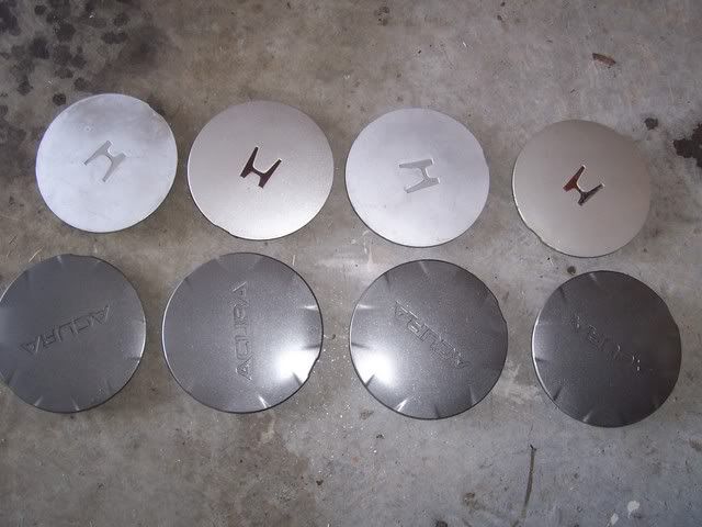 2. 2 sets of center caps, one set is off an Accord, the other set (gunmetal) is off of GS-R starfish rims; $15 a set.