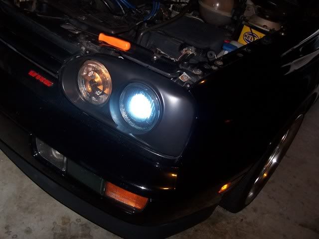 1. HIDs, the hearts are OEM Hella units, came off a '01 528. Expensive parts!!! The bulbs are 8k H3s that I ran in an H1 housings. Really bright, it is impossible to have regular bulbs be as bright as HIDs. $130