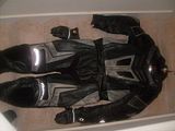 Big Man Leathers - Sz 54 (4XL) 6th Gear Dragon 2pc. Worn for about 10hrs total and crashed once (lowside). Has minor rash on the thigh/hip and one arm. About a 2 - 3 inch section on one thigh needs restitching. For reference I'm 6'4" 250lbs with a 48" chest and 40" waist; this suit is too big for me, mainly in the arms and torso. Also have matching gloves that just need a lil stitch work to perfect.