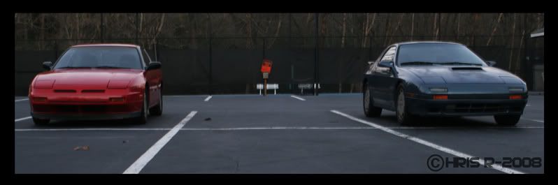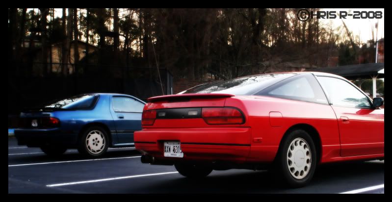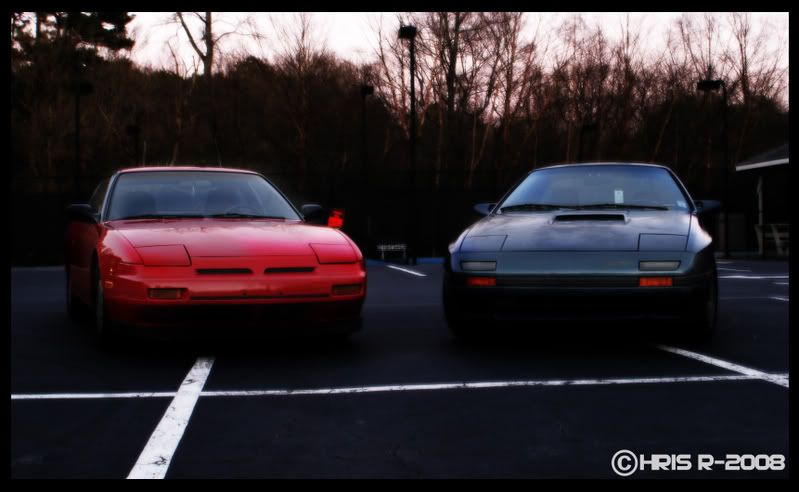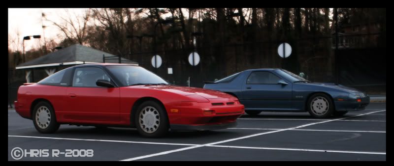 The Rx-7 is mine and the 240 belongs to a friend. He's not on this forum, but he is on 240 Atlanta under the name Nisxz. His car is an 89 with a 91 DOHC swap, a catback, Eibach sportline springs and some aftermarket shocks I forgot the name of. Ok, well enough text, lets get to the pics.