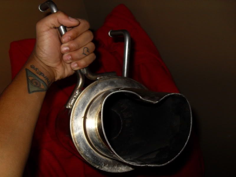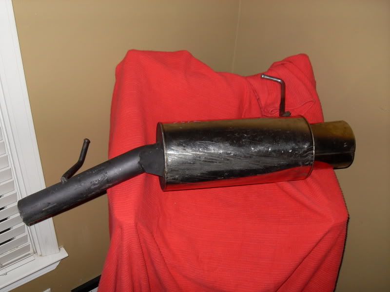 I've had this in my garage for atleast a year now. I was told it is an Apexi Hi-Power off of a 240sx. It has very visible damage to the underside of the muffler and there is a dent on the tip of the muffler. Great quality muffler, still has some life in it, it's just too big for what i'm looking for!