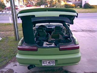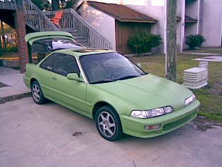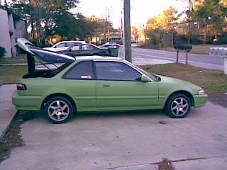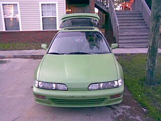 well i bought this with the intention of getting rid of it.. so thats whats happening ha ah.. but anyways 92 da kawasaki green primer 5 speed ls completely stripped on the inside, had gsr blades on it now has fat fives ans tinted windows. bout the just of it all. anyways heres the pics. mainly for travis.