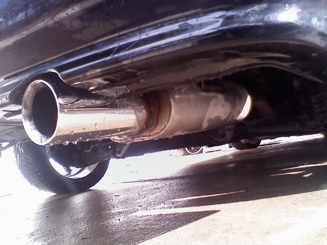 Looking to trade my exhaust from the header back for a stock exhaust. I drive like 80 miles a day, and after a while, an exhaust can become somewhat tiresome. It sounds nice, and im not sure as to the brandmuffler, but its a no-name(that i can find) muffler welded to 2.5" piping-one piece.