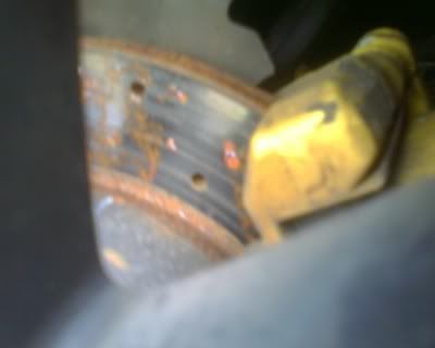 and here is a pic of the front rotor this is the best pic i could get with the rim still on it