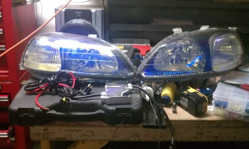 96-98 civic headlights w/ blue/yellow tint baked on super nice in daylight