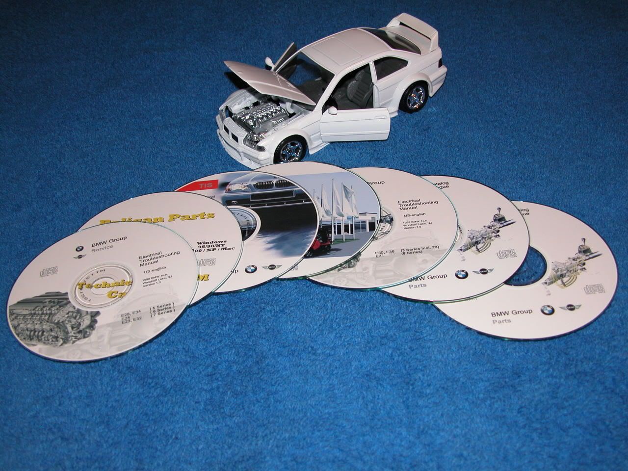 I have up for grabs BMW CD's for technical guides, diagrams, parts listings, etc... I originally purchased this for $200. It comes with 7 CD's. I am selling for $30 O.B.O. I need to get rid of it since I don't have a Bimmer anymore.