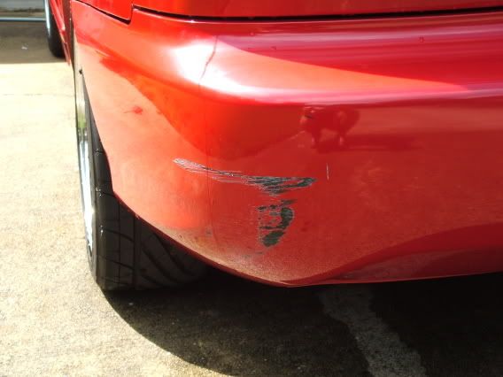 - Paint scraped off the driver’s side corner of the rear bumper, not a large area, and not deep into the paint, no dent.