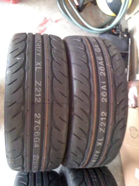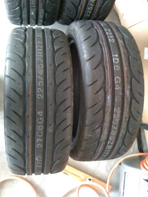 Up for sale are a set of Hankook R-S2 tires in 225/45/17 that has MAYBE 5 miles on them. We put them on the girlfriend's Mazdaspeed Miata and noticed that they were rubbing slightly on the front fenders due to a slightly larger sidewall so we took them off.