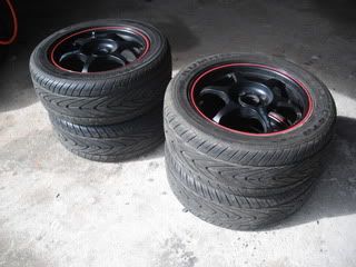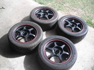 Default FS: 4x100 Buddy Club P1 Racing SF Black w/ red lip 15x6.5