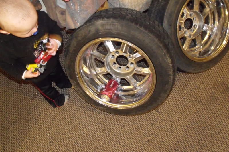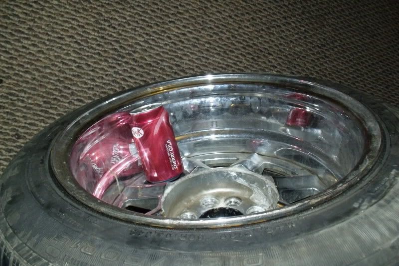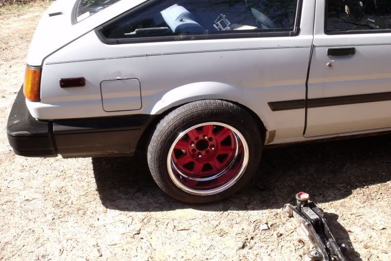 one wheels center is painted neon pink, i was gonna paint them to match the engine bay, then checked fitment....i could pull it off with flares, but im not butchering my cherry bodied ae86 hatch for wheels to fit.