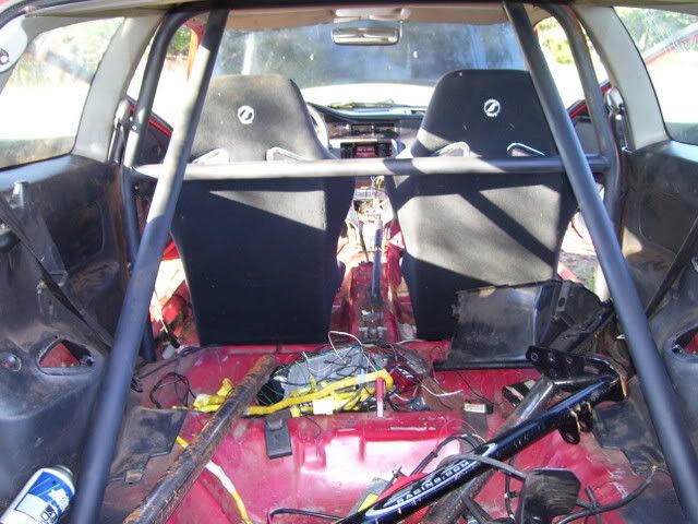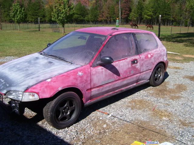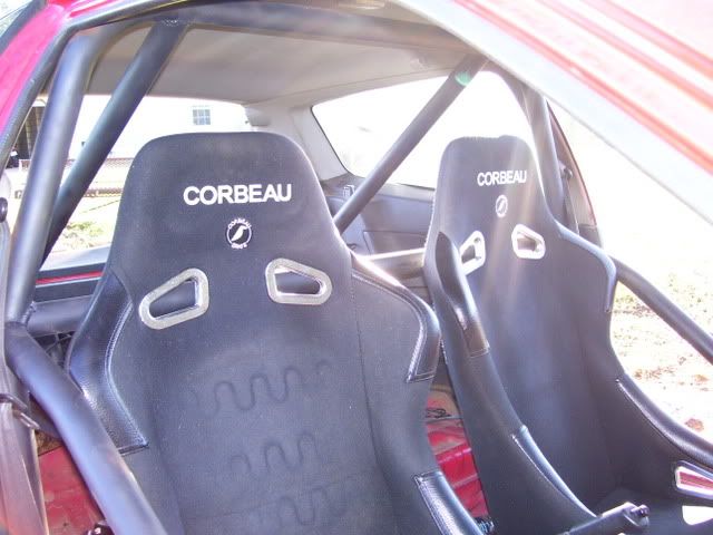 the car will not come with the corbeau seats unless you have an extra $500 to toss in with the purchase price. in the pics i had just got done sanding the car so thats why it is totally filthy with dust. the passenger door was not sanded becuase the door was too wavy for me to want to fix and the window jumps off track..i was gonna buy a new door. i do have a front bumper..actually 2...one is red and has a large cut out for my fmic, the other is black and is not cut out large...but the mesh is cut out. both will be included. just so there is no confusion here is what you get for $2200