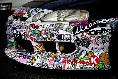 I just want ANY and all of your unwanted stickers i dont care what they are i want it to be as random as possible. eventually to look something like this front bumper but on the inside of my hardtop....